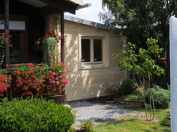 - készülhetnek 60-90 mm vastagságú, vízszintesen elhelyezkedő falelemekből vagy vázszerkezetes megoldással ( fából készült lambériával borítva),