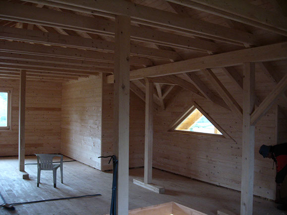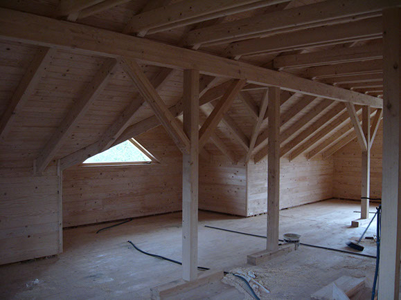 - megfelelő keresztmetszetű látszó tömör vagy ragasztott szarufa